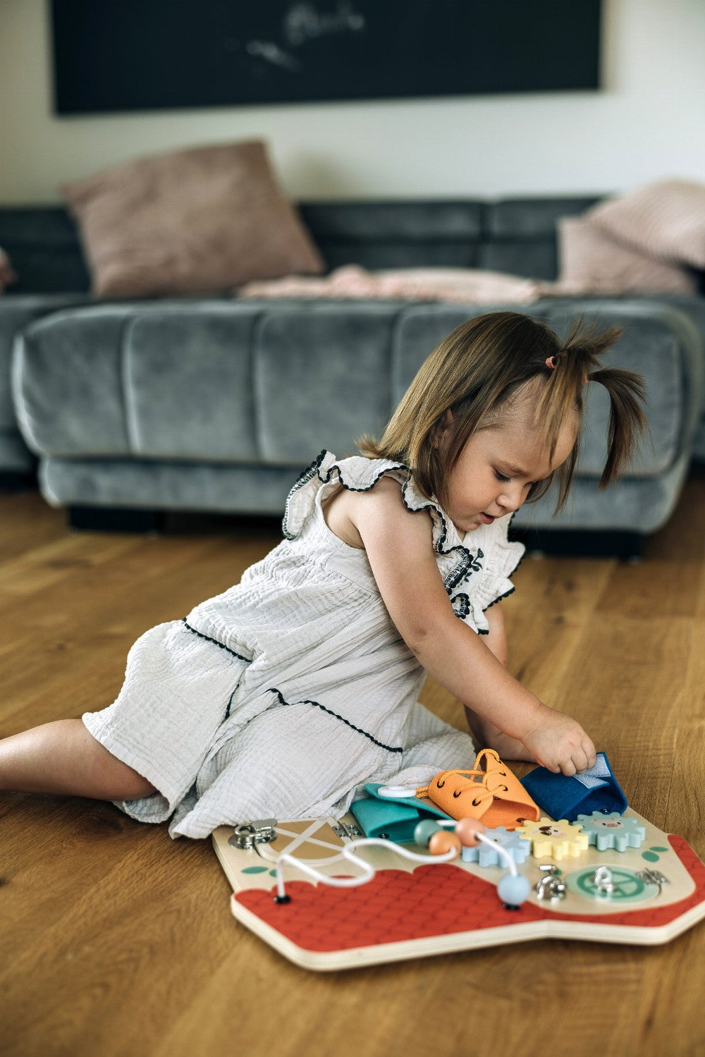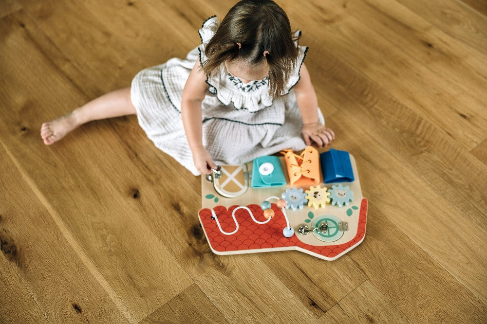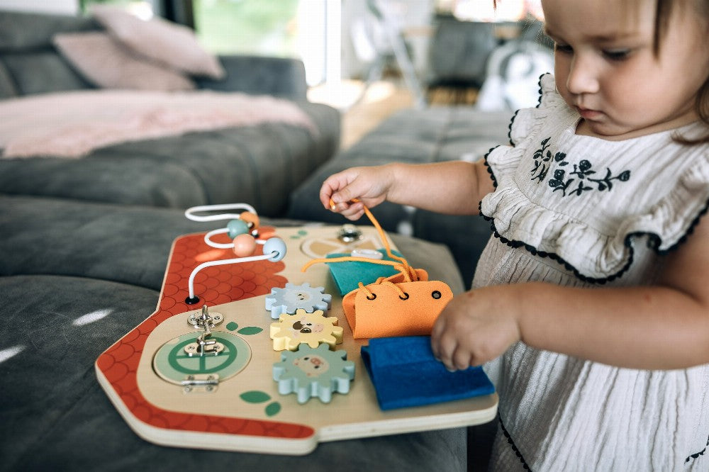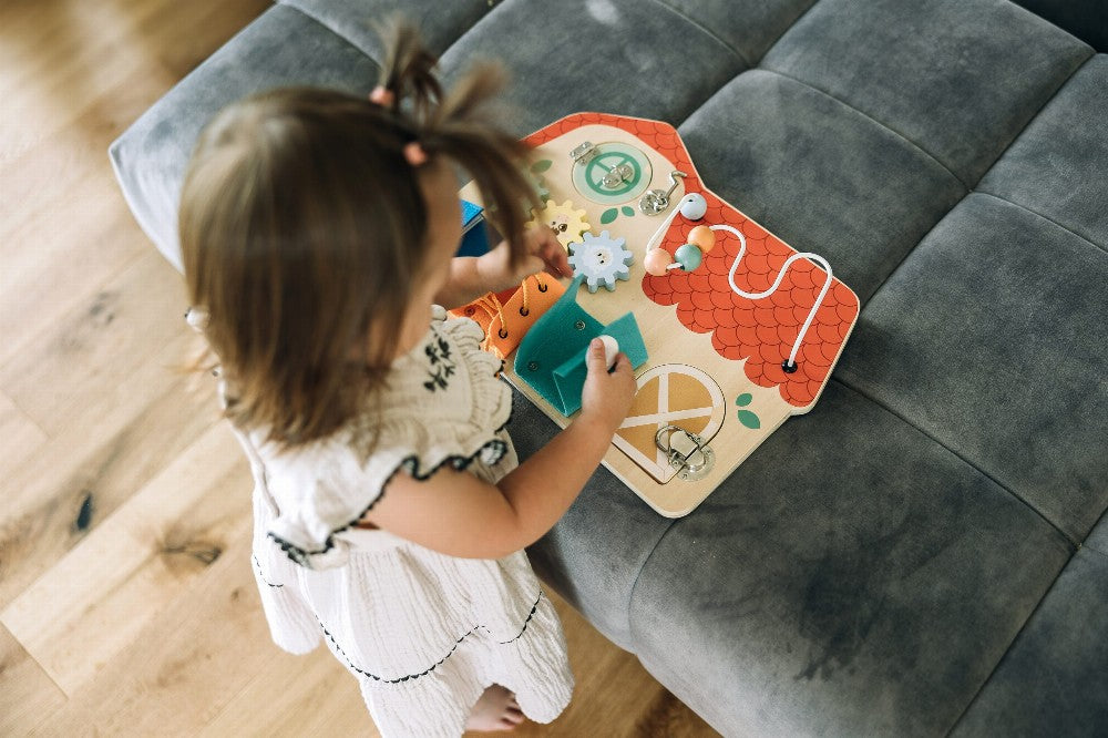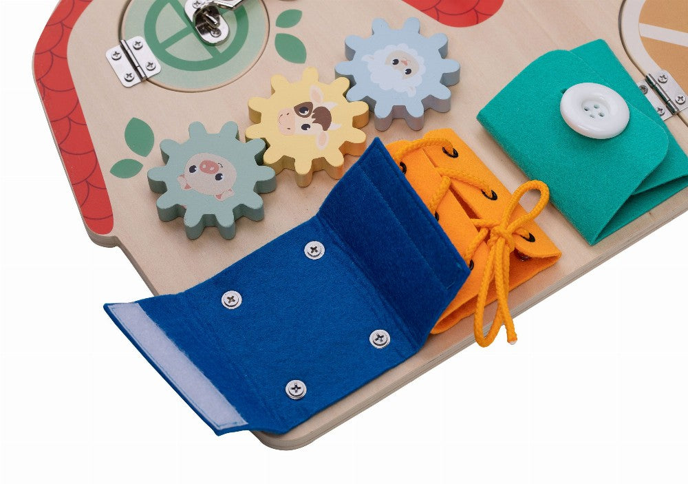 Das bunte Aktivitätsbrett wird Ihrem Kleinen viel Spaß machen. Durch das Öffnen der Fenster können sie entdecken, was hinter ihnen versteckt ist. Der Vorstand hilft, Feinmotorik, Hand-Augen-Koordination und Vorstellungskraft zu entwickeln.