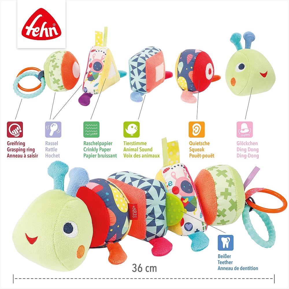 - FÜR DIE SINNE - Das Babypuzzle fördert den Greif- und Hörsinn: Mit Rassel, Quietsche, Raschelpapier, Beißer, Glöckchen und Tierstimme in der Raupe werden Neugierde und Aufmerksamkeit des Babys schnell geweckt