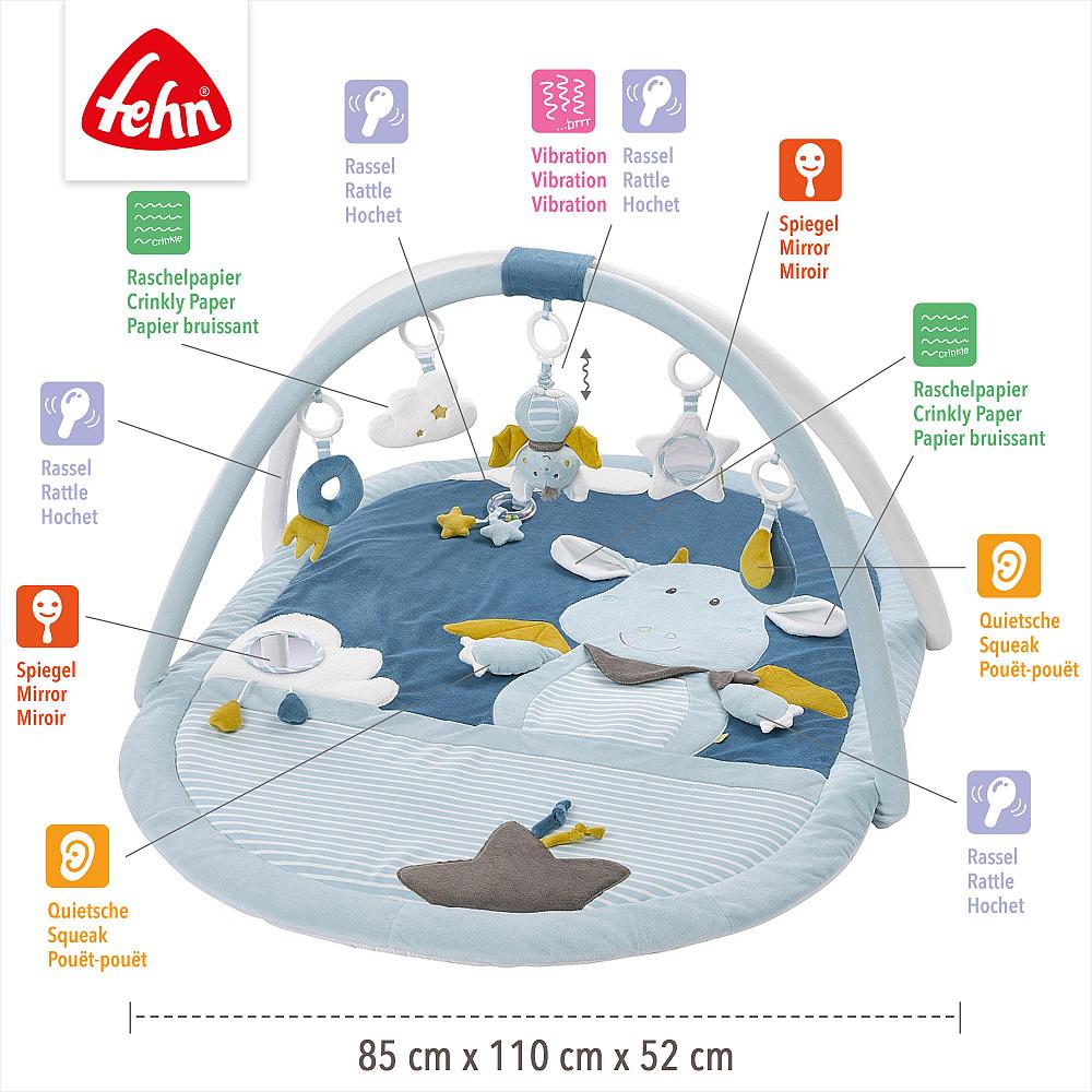 - BEQUEM & SICHER - Die ovale Spielmatte mit gepolsterter Liegefläche ist kuschelweich und schützt Mädchen und Jungen optimal bei der Erkundung der Welt des furchtlosen Drachen und der frechen Fledermaus