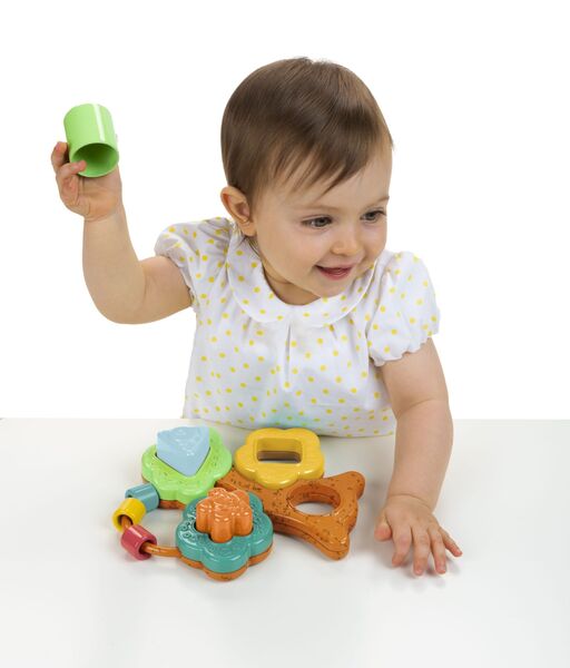 Sortierspielzeug in der Form des Baobab (Afrikanische Affenbrotbaum) mit 4 geometrischen Formen. 4 bunte Formen mit süßen Tiergesichtern zum Spielen und Einsetzen in ihren richtigen Platz. 3 verschiebbare Ringe in der Baumkrone des Baobab. Kinder sollen die Formen in ihren richtigen Platz einsetzen und lernen auf diese Weise geometrische Formen zu erkennen. Das Spielzeug entwickelt die Hand-Augen-Koordination und manuelle Fähigkeiten. Hergestellt aus 80% recyceltem Kunststoff aus industriellem Produktionsüberschuss. Es werden verschiedene Farbkombinationen unter gleicher Artikelnummer angeboten. Die Abbildungen können demnach vom Original abweichen.