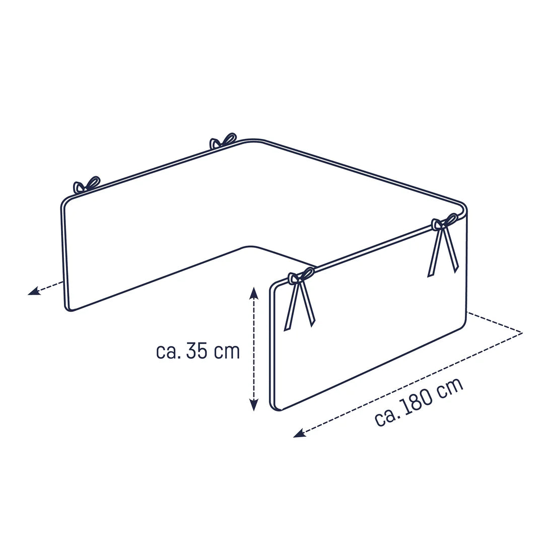 Das weiche Bettnestchen von Julius Zöllner schützt das Baby vor Zugluft und den harten Gitterstäben. Durch die vier Bänder lässt sich das Bettnestchen einfach und sicher befestigen. Mit einer Länge von 180cm ist das Bettnestchen für Kinderbetten der Größe 140x70cm und 120x60cm geeignet.