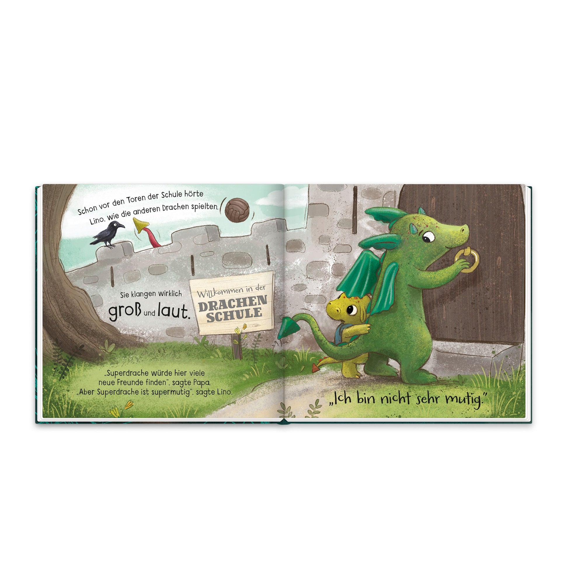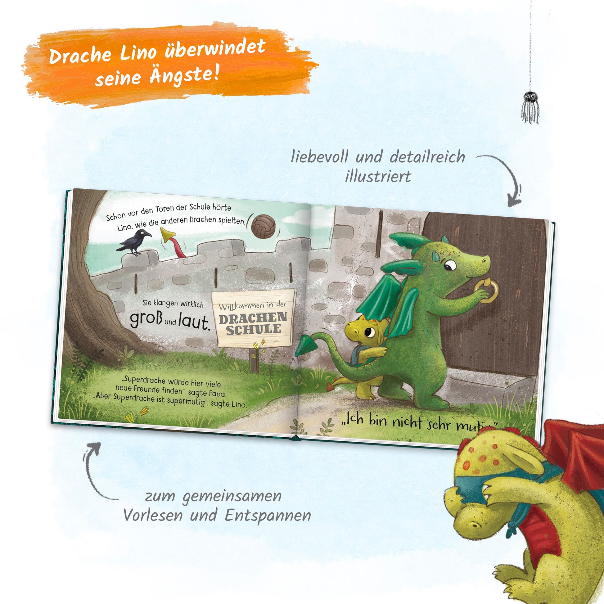 Der kleine Drache Lino hat Angst vor fast allem – vor der Dunkelheit, vor Geräuschen und vor allem vor der Drachenschule. Doch immer, wenn Lino sich vor etwas fürchtet, denkt er an sein großes Vorbild Superdrache und entdeckt ein kleines bisschen mehr Mut in sich, als er selbst erwartet hätte. Eine zauberhaft illustrierte Bilderbuchgeschichte, die kleinen Zuhörern zeigt, dass sie mit ihren Ängsten nicht alleine sind und sie sich diesen stellen können.