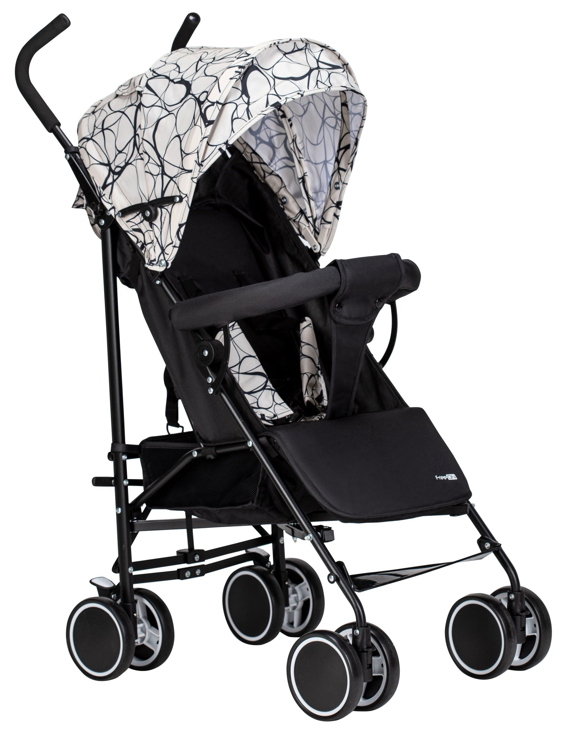 Ein leichter Sportwagen eignet sich für ein Kind von 0 bis 15 kg oder von der Geburt bis zu 36 Monaten. Es hat eine schnallenverstellbare Rückenlehne und eine verstellbare Fußstütze. Die Netzkonstruktion auf der Rückenlehne ermöglicht eine Luftzirkulation und damit eine bessere Atmungsität. Es ist auch mit einer praktischen Tasche für kleine Accessoires ausgestattet. Das Vordach des Kinderwagens ist zweistöckige, und zur leichteren Überwachung des Kindes hat es ein Netzfenster.