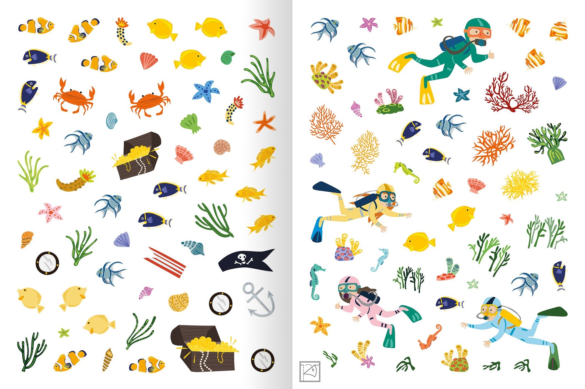 Für alle kleinen Unterwasser-Fans. Tauche ein, in die wunderbar schillernde Unterwasserwelt! Auf den bunt illustrierten Seiten gibt es jede Menge zu entdecken und jede Menge Platz die über 350 Aufkleber mit coolem Metallic-Effekt einzukleben. Metallic-Effekt: Die Sticker glänzen metallisch blau und silber. Tolle Szenen: Im Korallenriff, tief unten im Meer oder in der Antarktis ? Die Bilder regen die Kreativität und Fantasie an. Große Sticker für kleine Hände: Hier können Kindergartenkinder ab 3 Jahren nach Herzenslust stickern. Heraustrennbare Stickerbögen: Zur kindgerechten Handhabe sind die Stickerbögen perforiert und können herausgetrennt werden, so muss nicht ständig hin- und hergeblättert werden. Tolle Beschäftigung: Ob zu Hause oder unterwegs, mit dem Stickerbuch können sich die Kinder gut selbst beschäftigen. Ideal als Geschenk oder Mitbringsel: Alle Unterwasser-Fans werden dieses Stickerheft lieben. Der besondere Stickerspaß. Das großformatige Stickeralbum bietet jede Menge Raum, der Fantasie freien Lauf zu lassen und eigene, schillernde Szenen rund um das Thema Unterwasserwelt zu erschaffen.
