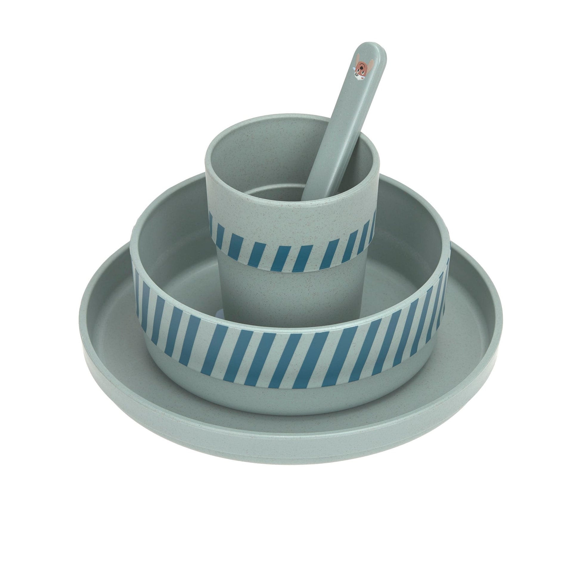 - 4-teiliges Set Teller, Schüssel, Becher, Löffel