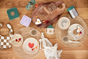 Das LÄSSIG Kindergeschirr Set Happy Rascals mit seinen funktionalen Details und liebevollen Prints macht die ersten eigenständigen Essversuche zum Klacks.