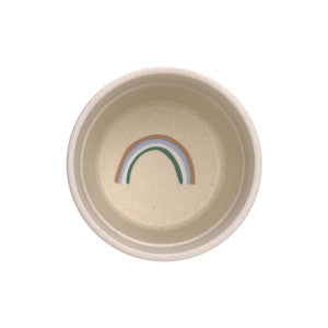 Zum Kindergeschirr Set gehören ein Teller, ein Schälchen, ein Becher sowie ein Löffel.
