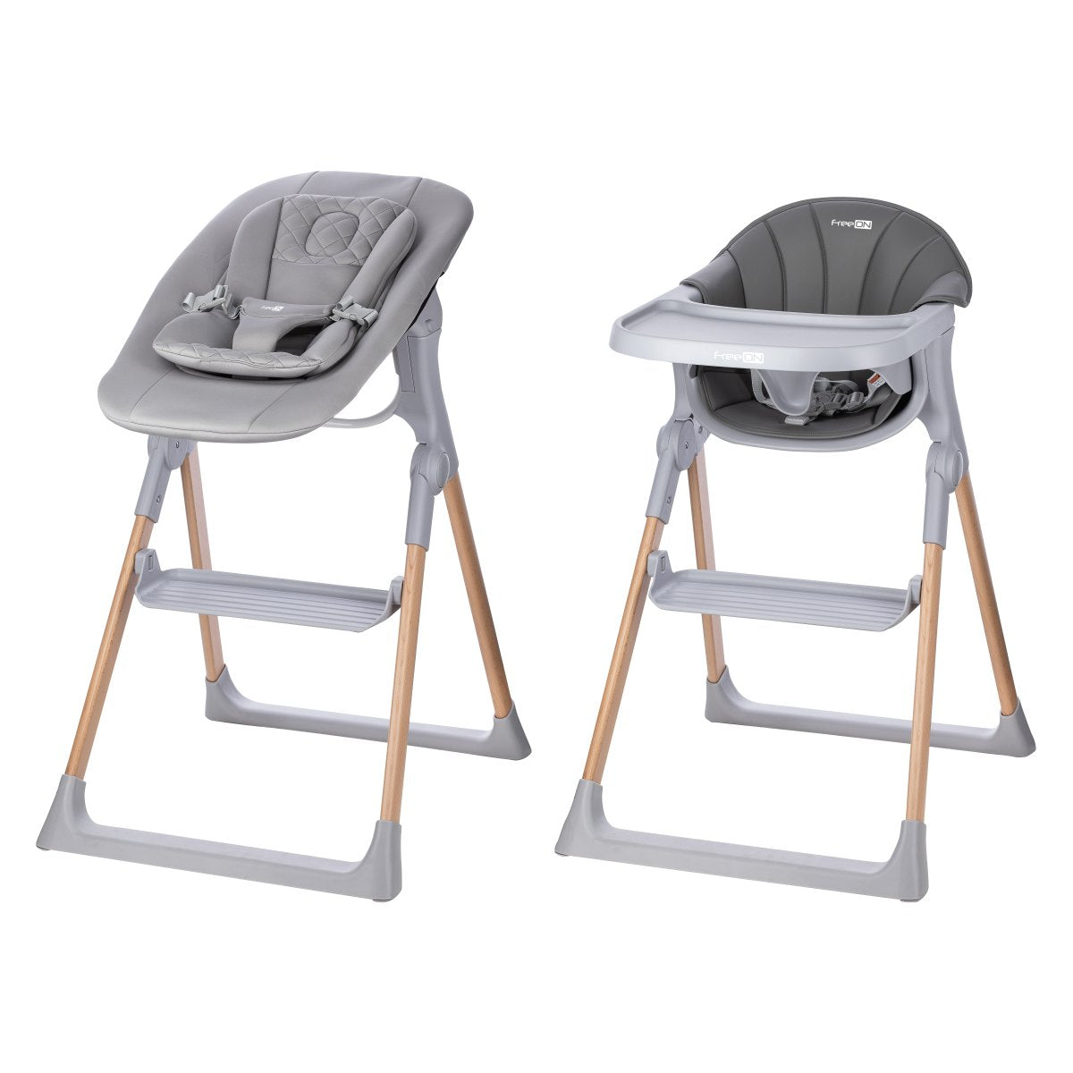 Der FreeON Hochstuhl Flexi Grow 2 in 1 ist ein unglaublich praktischer Essensstuhl, da das Set zwei Aufsätze mit dem Gestell enthält. Der eine ist eine Liege, die von der Geburt bis zum Alter von 9 Monaten verwendet werden kann, und der andere ist ein Sitzaufsatz, der ab einem Alter von 6 Monaten bis zu 15 kg verwendet werden kann.