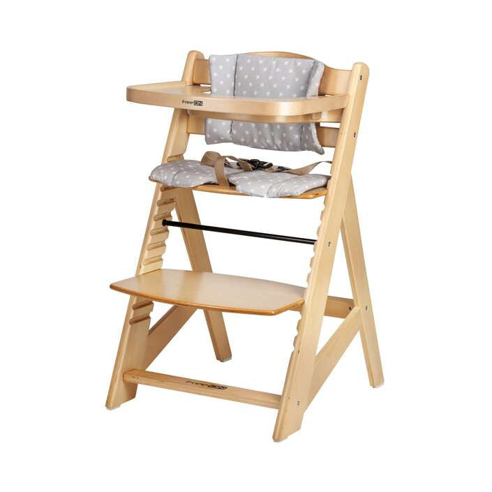 Toby Plus Holzhochstuhl mit Tablett und Kissen. Der Toby Plus Holzhochstuhl ist sowohl bequem als auch praktisch. Die Sitzhöhe und die Fußstütze lassen sich an jede Esstischhöhe und die Größe Ihres Kindes anpassen. Er ist für Kinder geeignet, die selbstständig sitzen können, also ab einem Alter von etwa 6 Monaten. Er wurde für Kinder mit einem Gewicht von bis zu 15 kg getestet