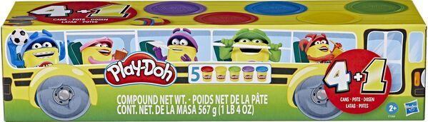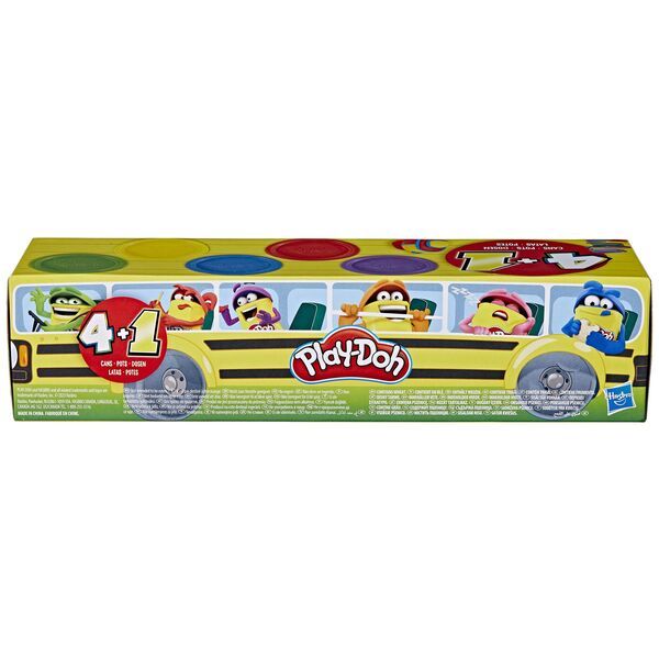 Dieser Pack enthält 112g-Dosen Play-Doh Spielknete in 5 Farben, die in einer supersüßen Verpackung im Look eines Schulbusses erscheinen. Ab 2 Jahren.