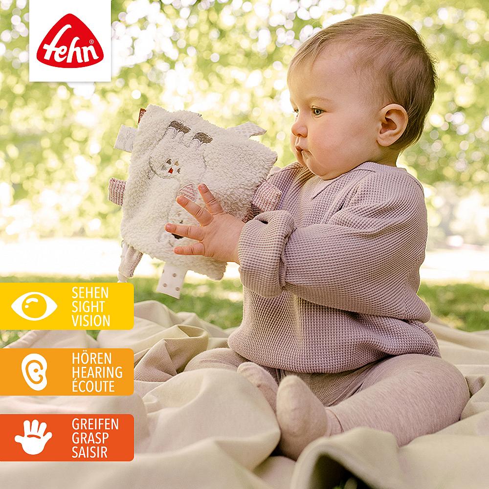 - Das Activity-Tuch fördert spielend den Hör-, Greif- und Tastsinn sowie die Feinmotorik des Babys und eignet sich somit ideal als Geschenk zur Geburt, Taufe oder zum Geburtstag