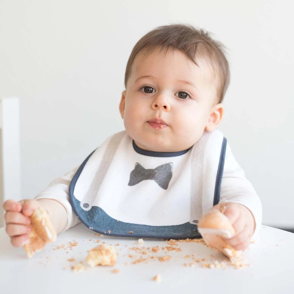 Für einen besonderen Anlass oder einfach nur, um das Baby beim Essen stilvoll zu kleiden, entscheiden Sie sich für dieses Set aus Baby-Lätzchen mit eleganten Outfits. Fliege, aufgedruckter kleiner Spruch, der garantiert alle verzaubern wird, dieses Lätzchen-Set ist für kleine Gentlemen gemacht. Sie werden mit einem weichen Klettverschluss am Nacken geschlossen, der sich sanft anfühlt und die empfindliche Haut der Kleinen schont. Aus Frottee-Material gefertigt, sind sie saugfähig. Sie sind außerdem mit einem geräuschlosen Kunststoff gefüttert, um perfekte Wasserdichtigkeit zu gewährleisten. Im 7er-Set verkauft.
