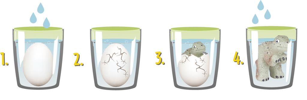 Das Ei einfach ins Wasser legen und nach ein paar Tagen schlüpft ein kleiner Dino und wächst noch einige Tage weiter.