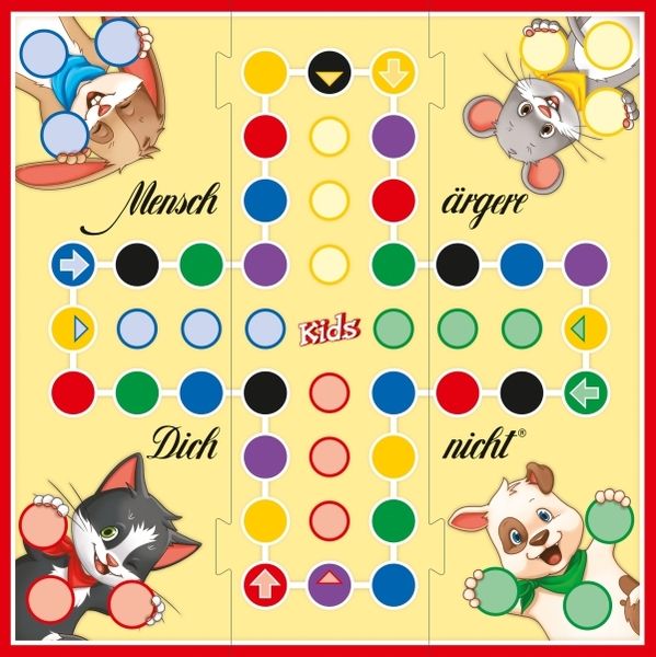 Mit der kindgerechten Farbversion können schon Kinder ab 4 Jahren MENSCH ÄRGERE DICH NICHT problemlos spielen. Und zählen können muss man auch noch nicht, um seine Spielfiguren als Erster ins Ziel zu bringen. Die Würfelfarben zeigen, wie weit man ziehen darf. Ab 4 Jahren.