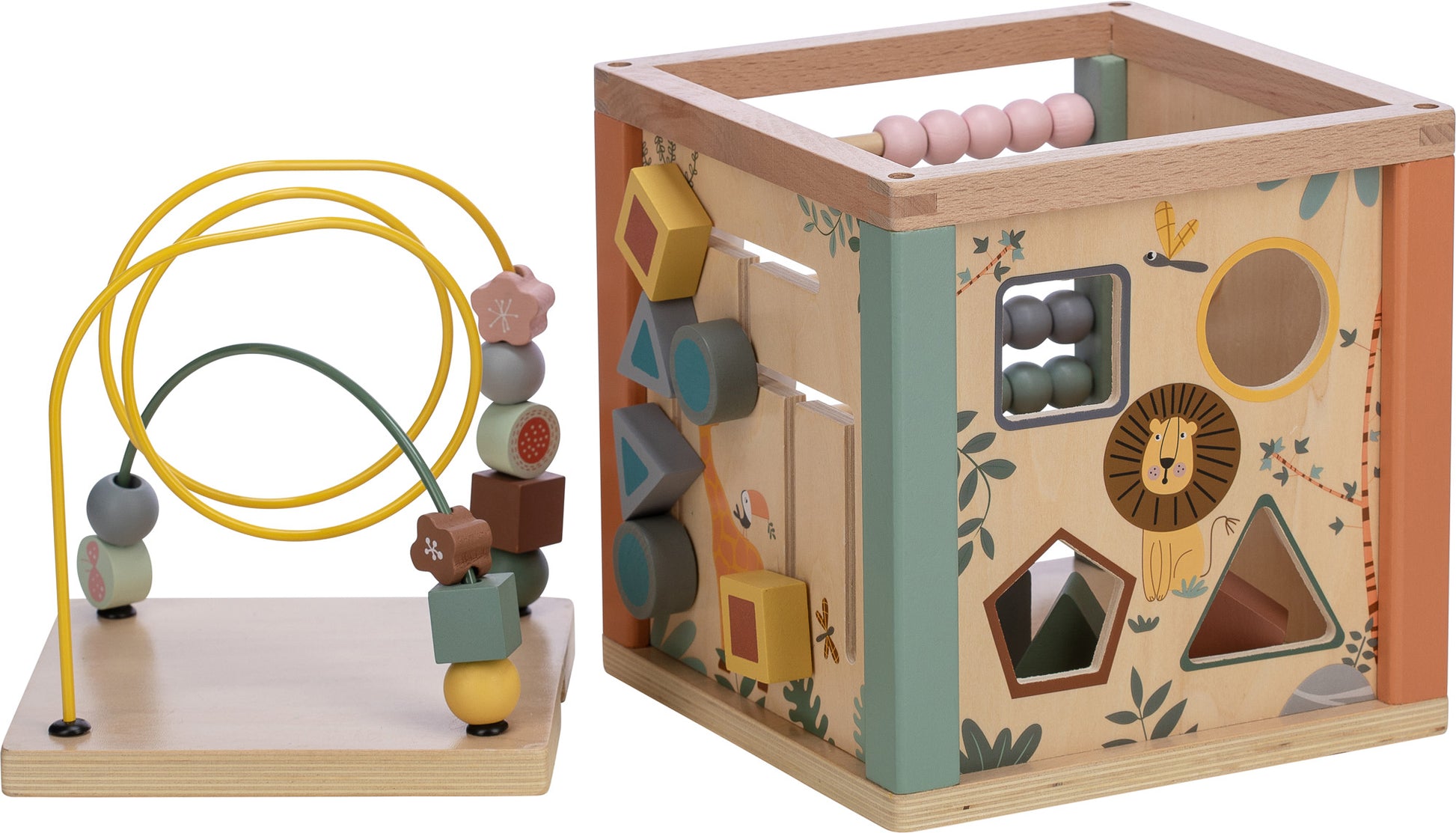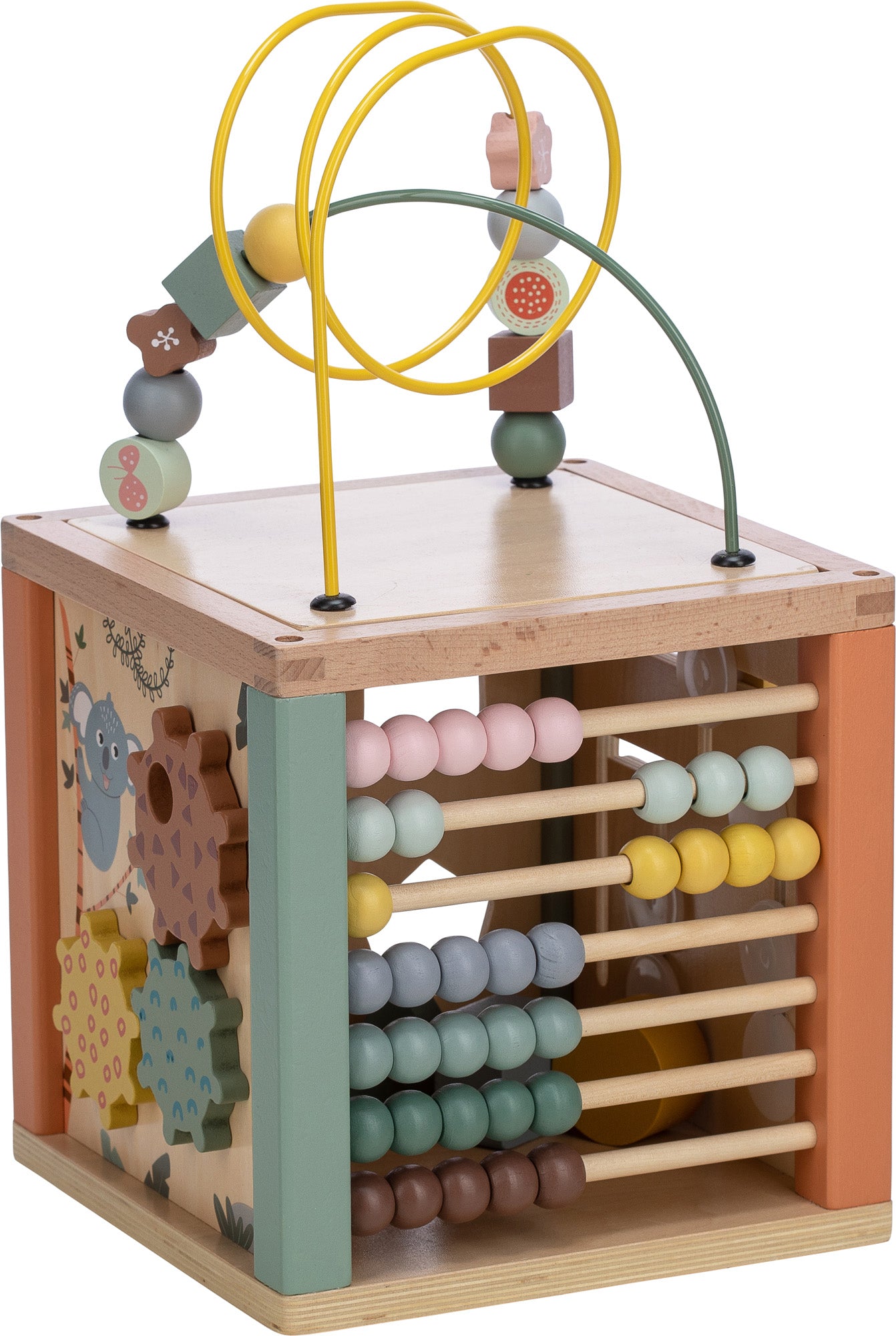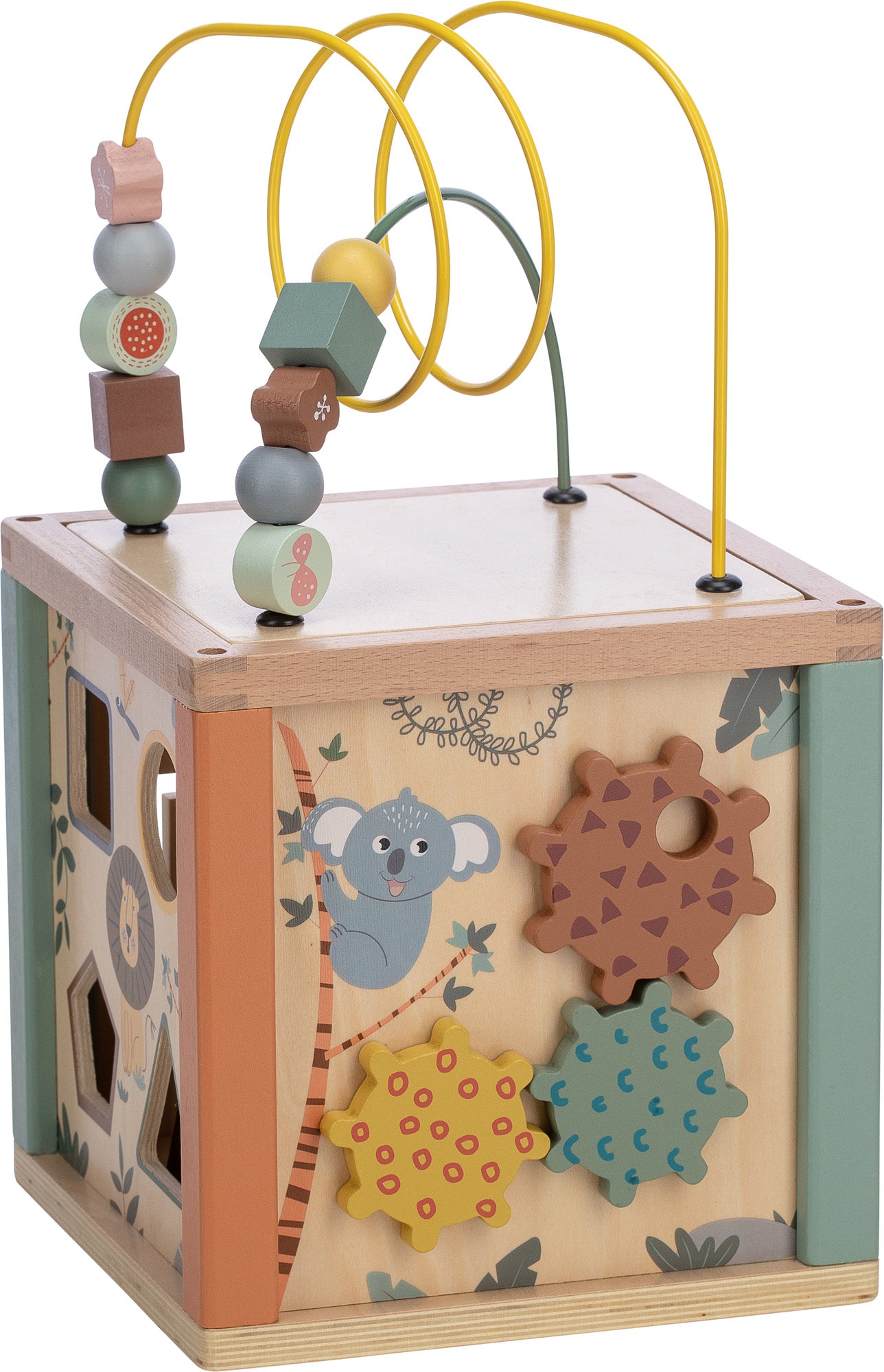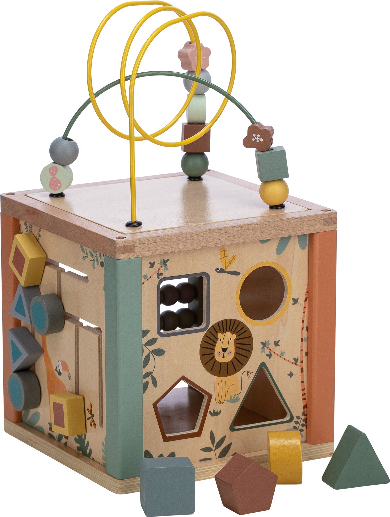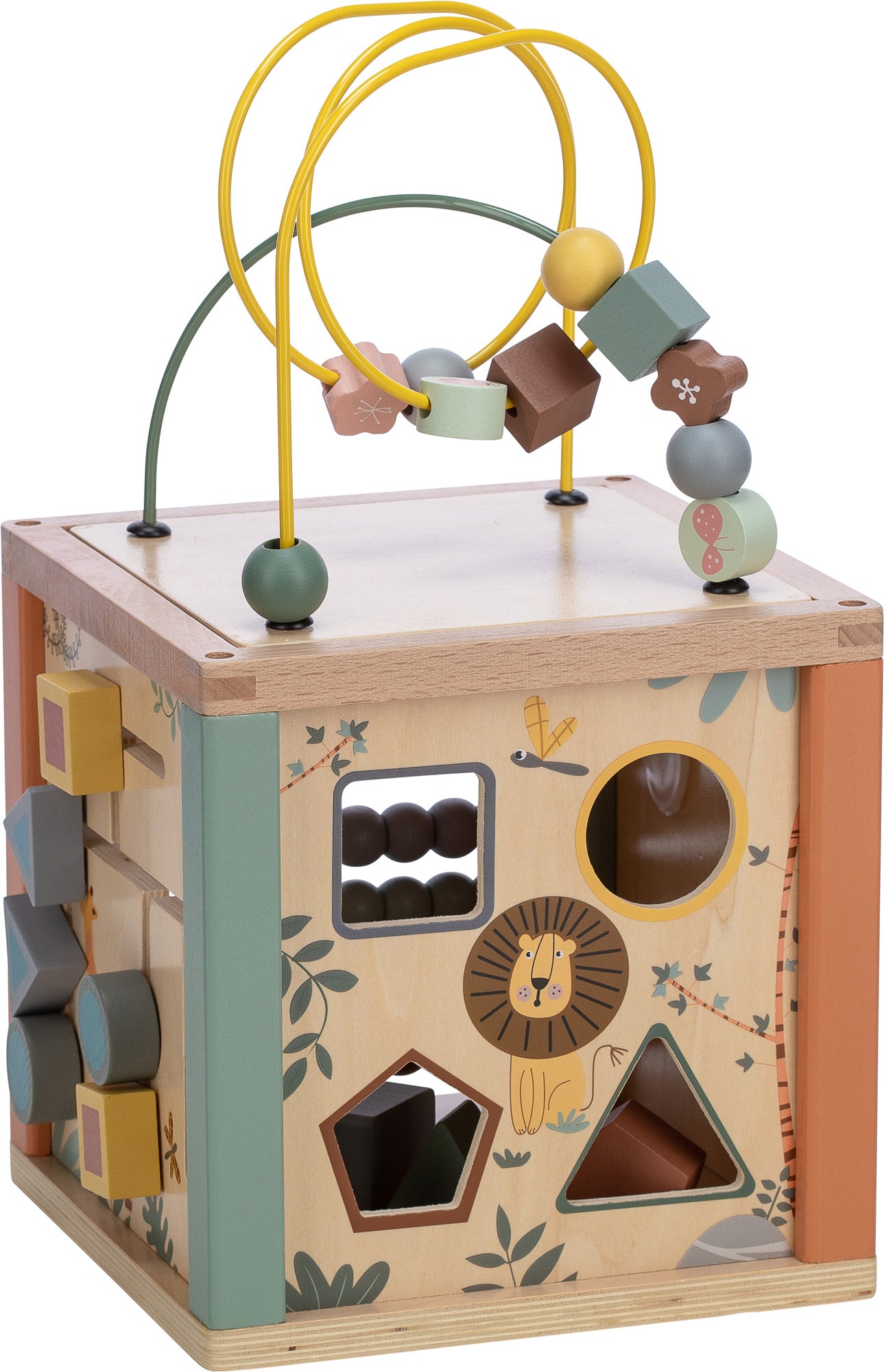 Ein großer, didaktischer Holzwürfel mit hohem Spielwert zur Förderung der Feinmotorik und des logischen Denkens von Kindern.