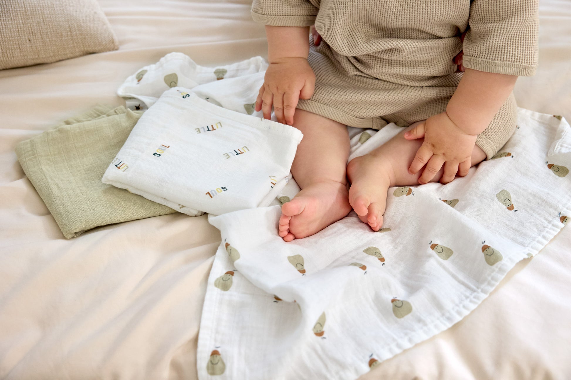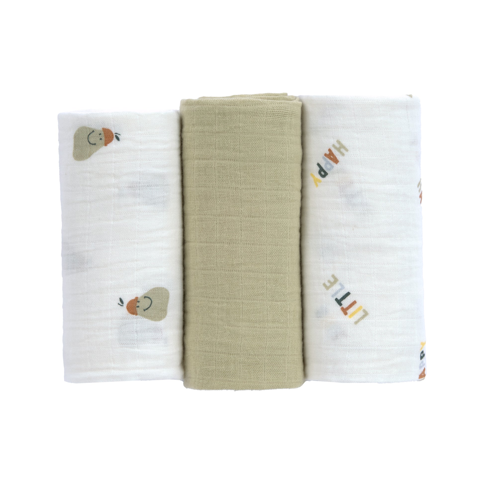 Musselinetücher 3 Stück: weiß,Grün,Birnen
