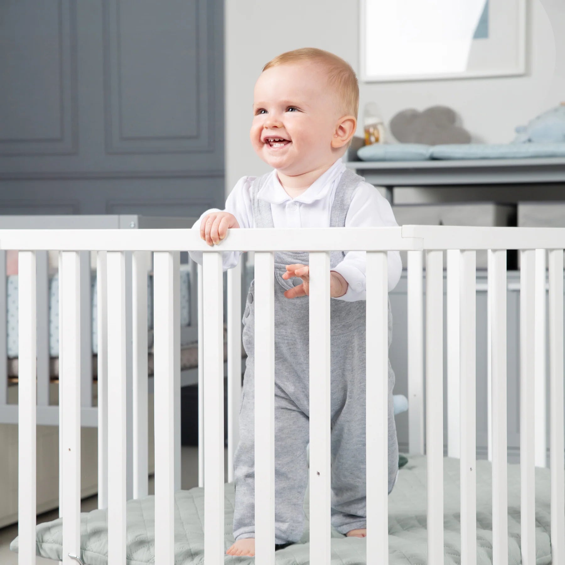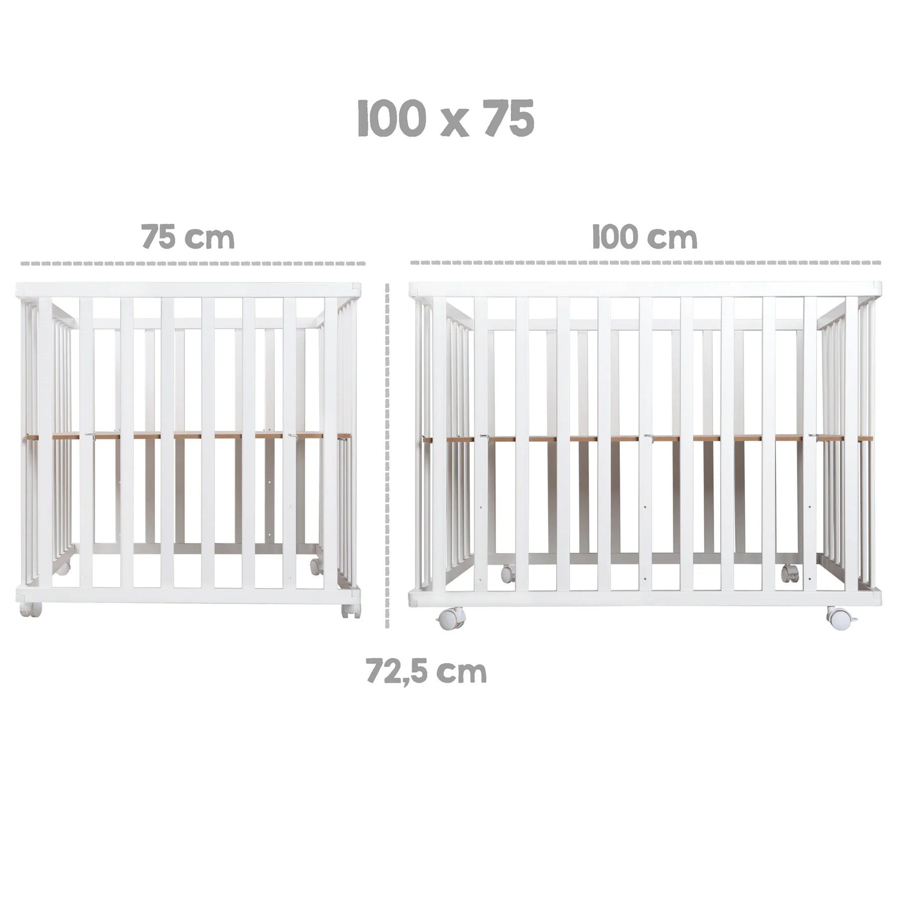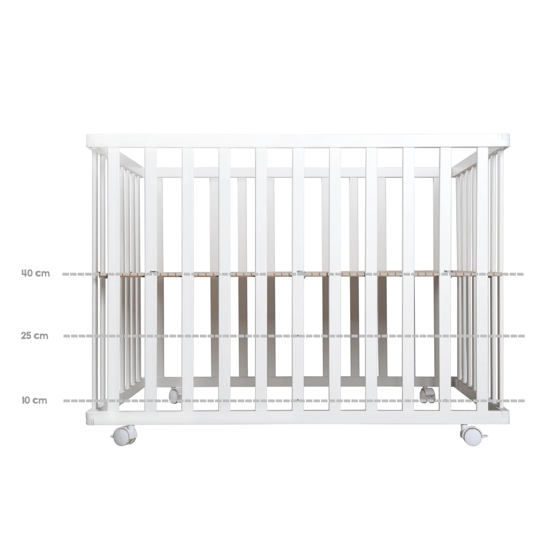 Der roba Laufstall mit 3-fach höhenverstellbarem Laufgitterboden ist babyfreundlich und splitterfrei. Vier Bremsrollen sorgen für Mobilität und Standfestigkeit.