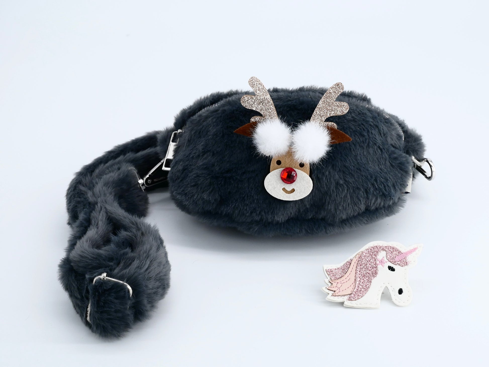 Plüsch Bauchtasche: grau, Rentier/Einhorn
