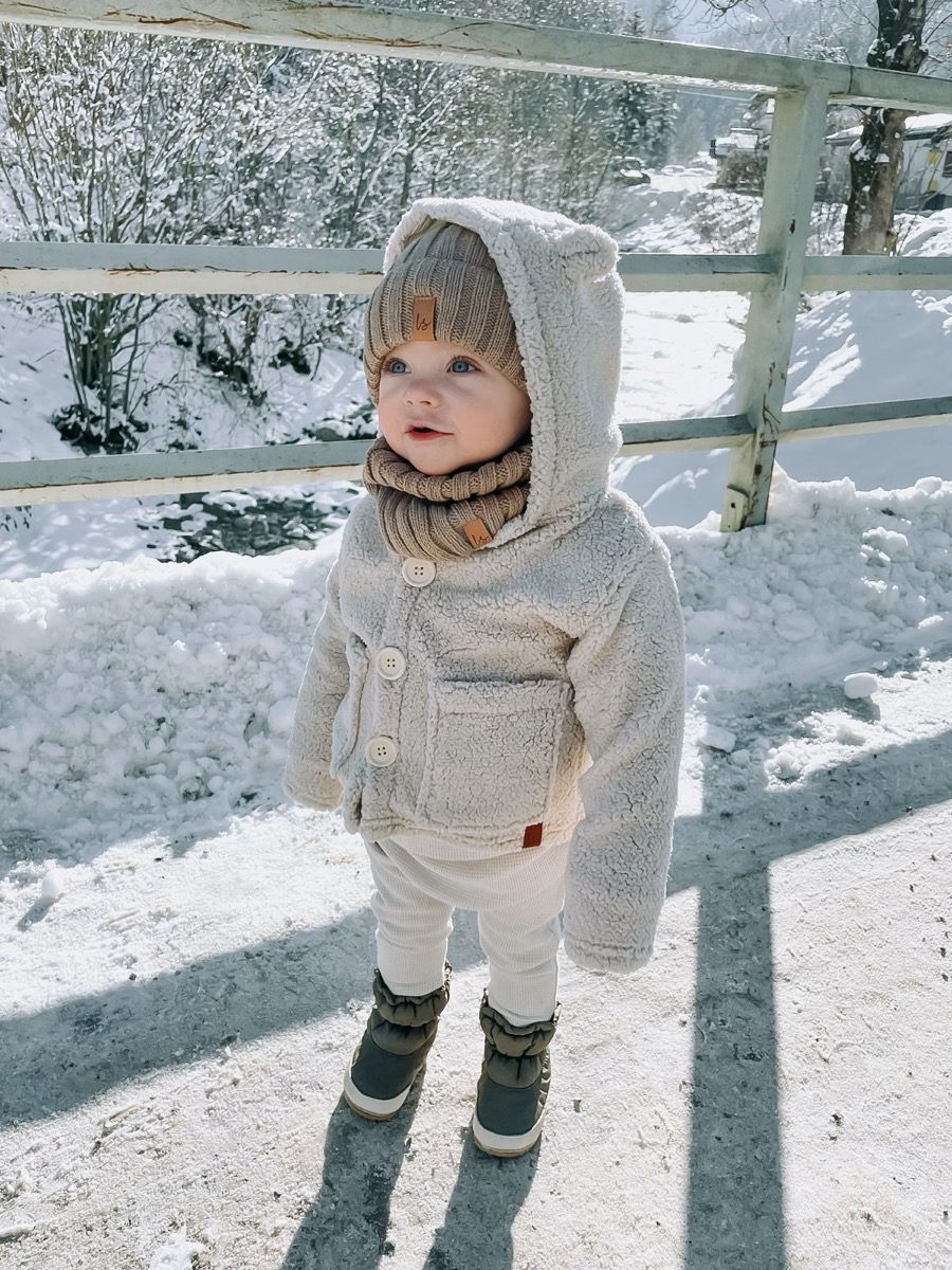 Diese Teddyjacke ist so weich, dass Sie sie selbst tragen möchten. Die Teddy Jacket Sand ist ein Must-have für die kälteren Tage. Hergestellt aus nachhaltigen Materialien und produziert in Europa. Die Jacke ist fair, ökologisch und von hoher Qualität – genau das, wofür Babystyling steht.