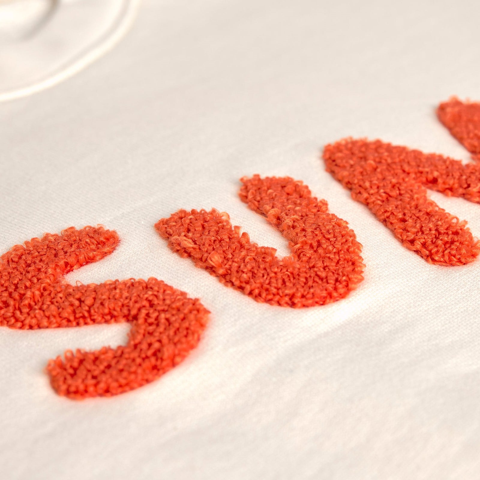 Der weiße Kinder Pullover aus Bio Baumwolle im lässigem Oversized Look und mit 3D Stickerei SUN macht das Outfit der Kids zum absoluten Hingucker. Kuschlig weich und bequem - für Kinder im Alter von 1 bis 6 Jahren.