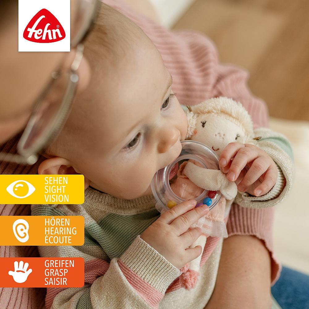 - Der Greifling fördert spielend den Hör-, Greif- und Tastsinn sowie die Feinmotorik des Babys und eignet sich somit ideal als Geschenk zur Geburt, Taufe oder zum Geburtstag