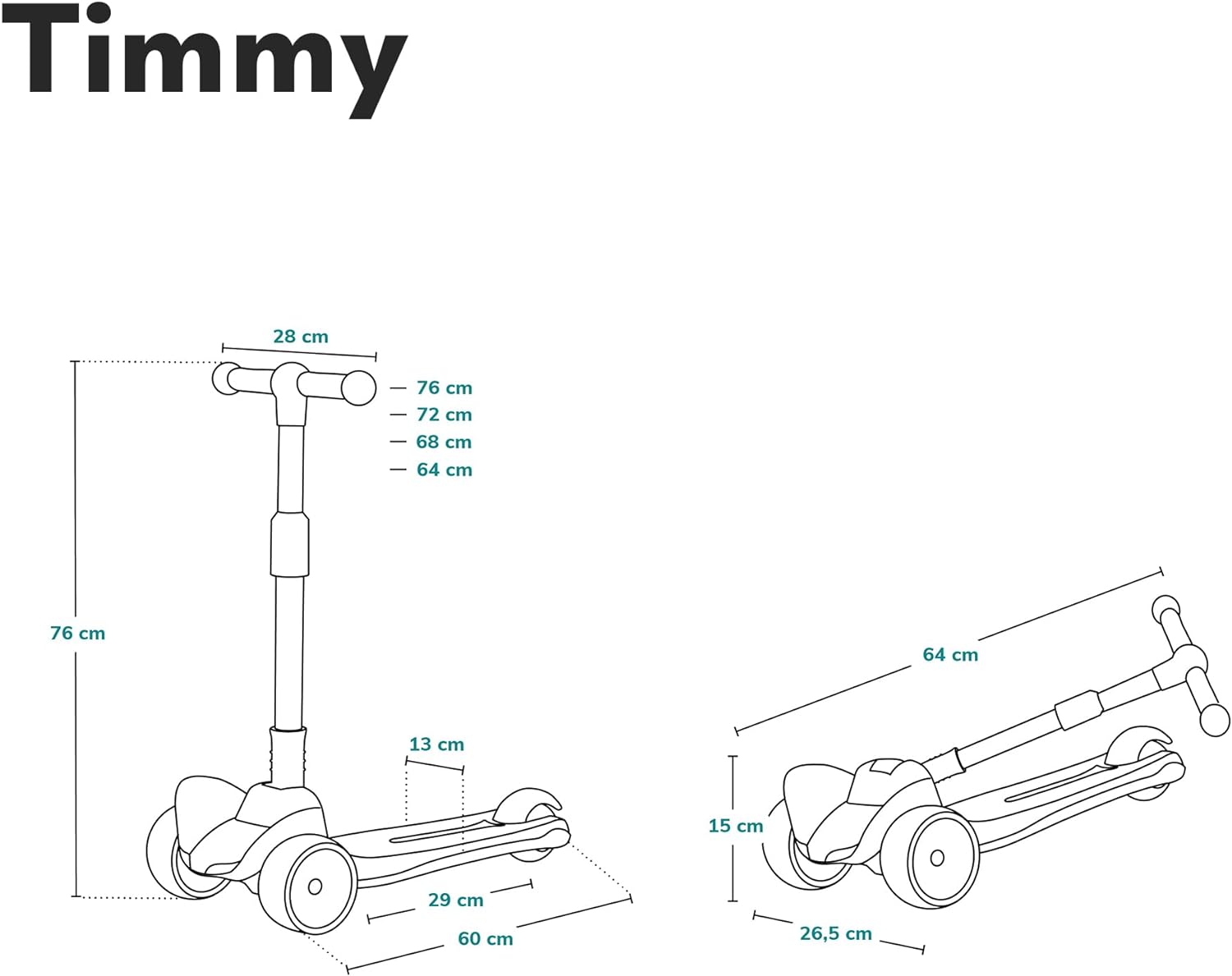 - KOMFORTOWE PROWADZENIE: dank der 4-stufigen Regulierung des Lenkers ist es sehr einfach, den Scooter an die Körpergröße des Kindes anzupassen 64/68/72/76. Komfortable Griffe verbessern den Fahrkomfort, und ein 65-Grad-Lenkradeinschlagbegrenzer verhindert, dass Sie während der Fahrt umkippen.