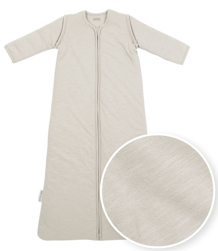 In diesem Meyco Baby-Schlafsack aus Slub-Baumwolle mit abnehmbaren Ärmeln schläft dein Kleines noch komfortabler. Der einzigartige Slub-Effekt gibt dem Schlafsack einen schönen Twist und verleiht diesem unifarbenen Schlafsack ein schickes Design. Das strukturierte Material sieht außerdem sehr natürlich aus und lässt sich leicht mit deiner kompletten Baby-Ausstattung kombinieren.