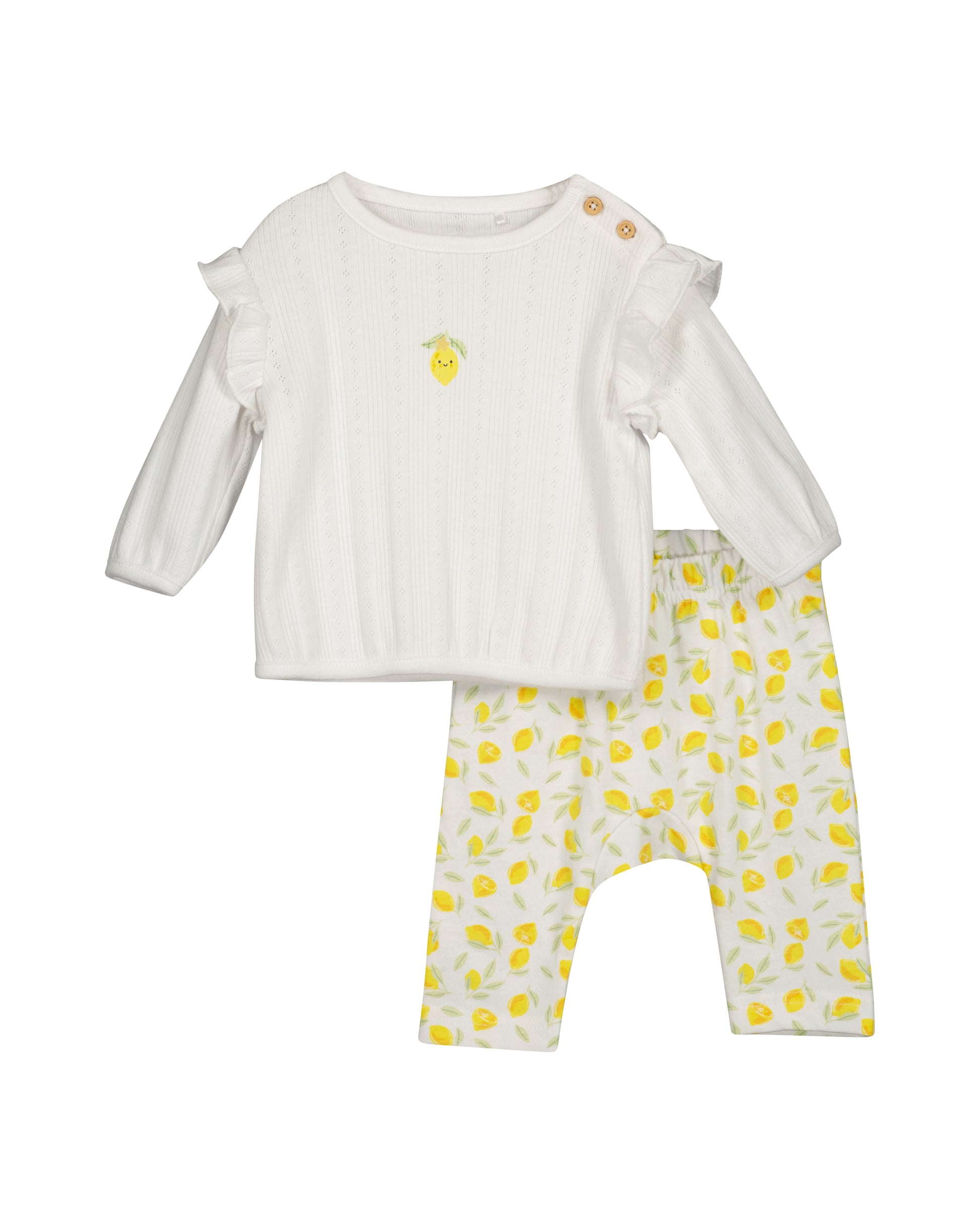 Set: Langarmshirt und Hose: weiß,Zitronen