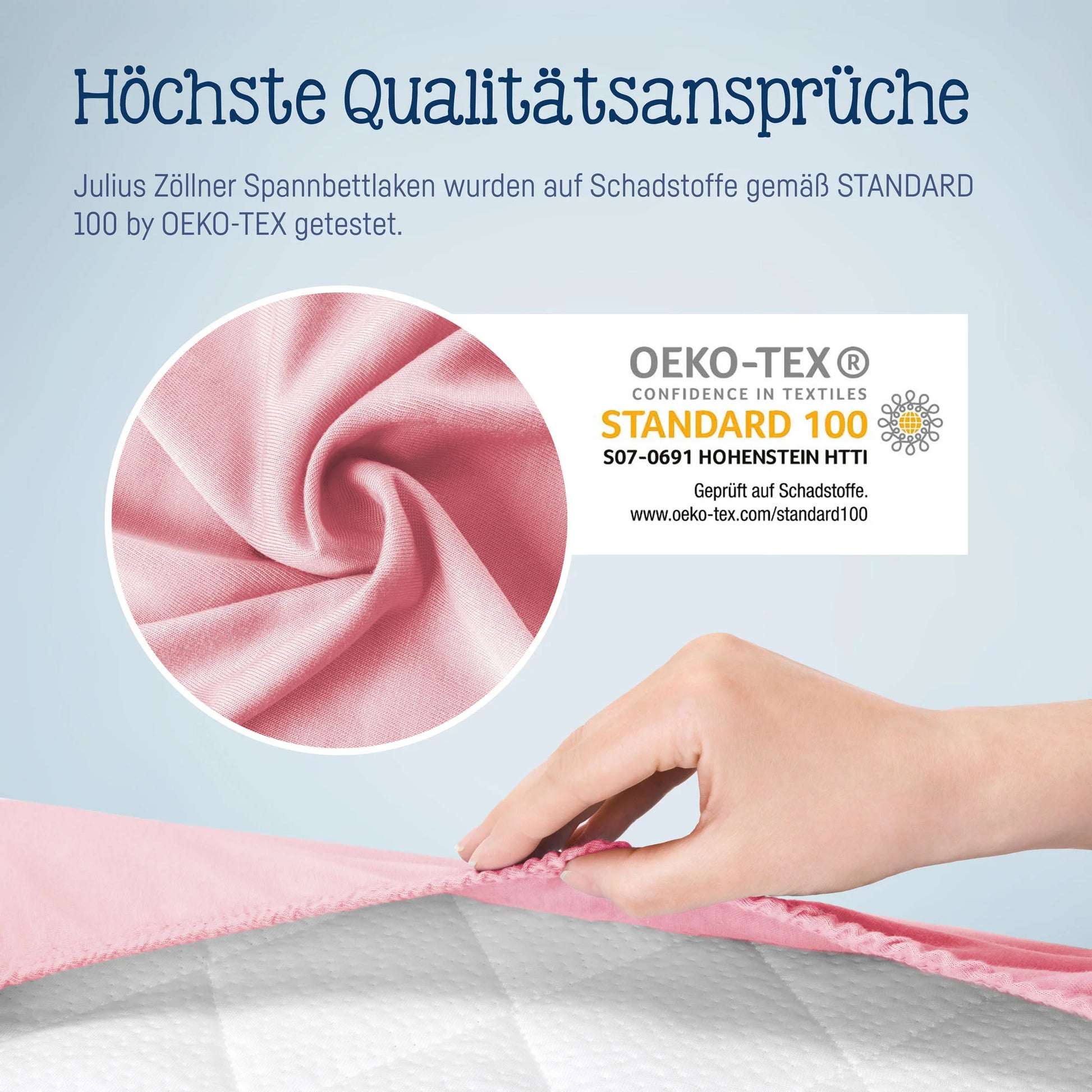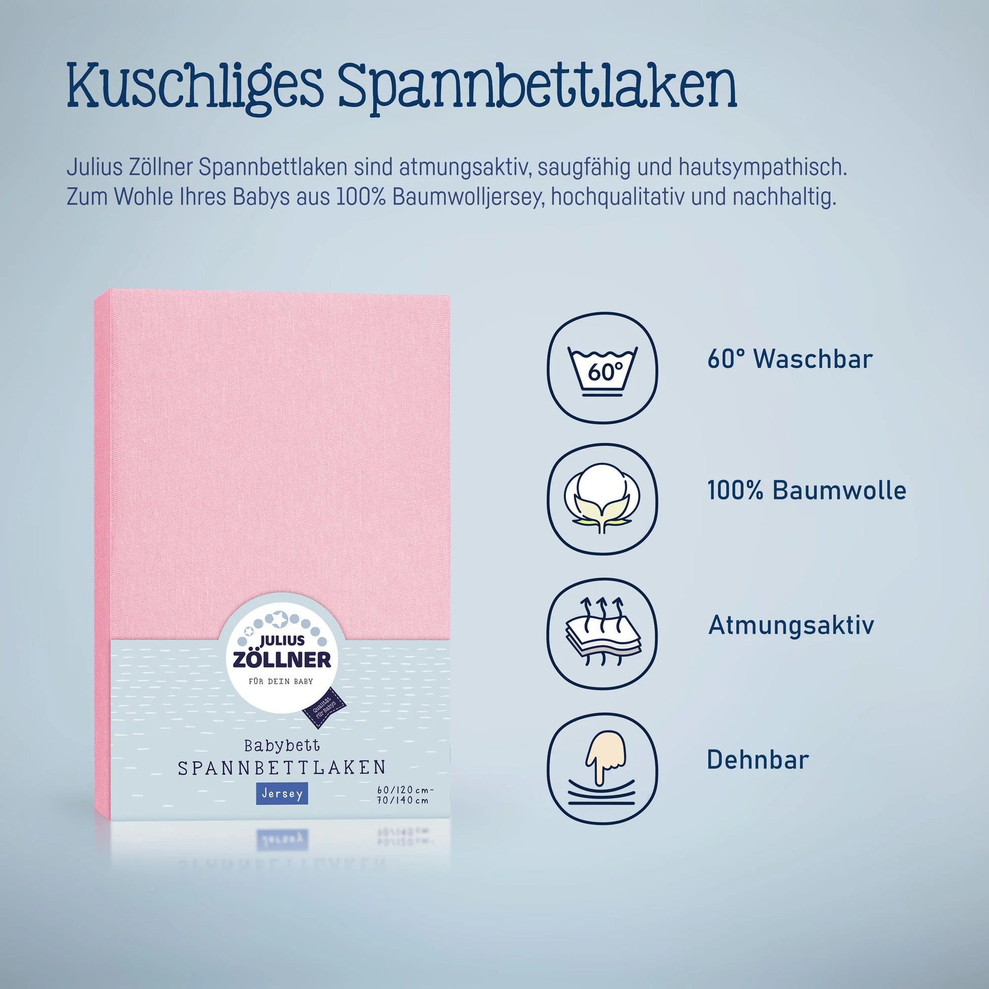 Das original Julius Zöllner Spannbetttuch. Kuscheliges, atmungsaktives und besonders saugfähiges Jersey Spannbettlaken aus 100% Baumwolle.