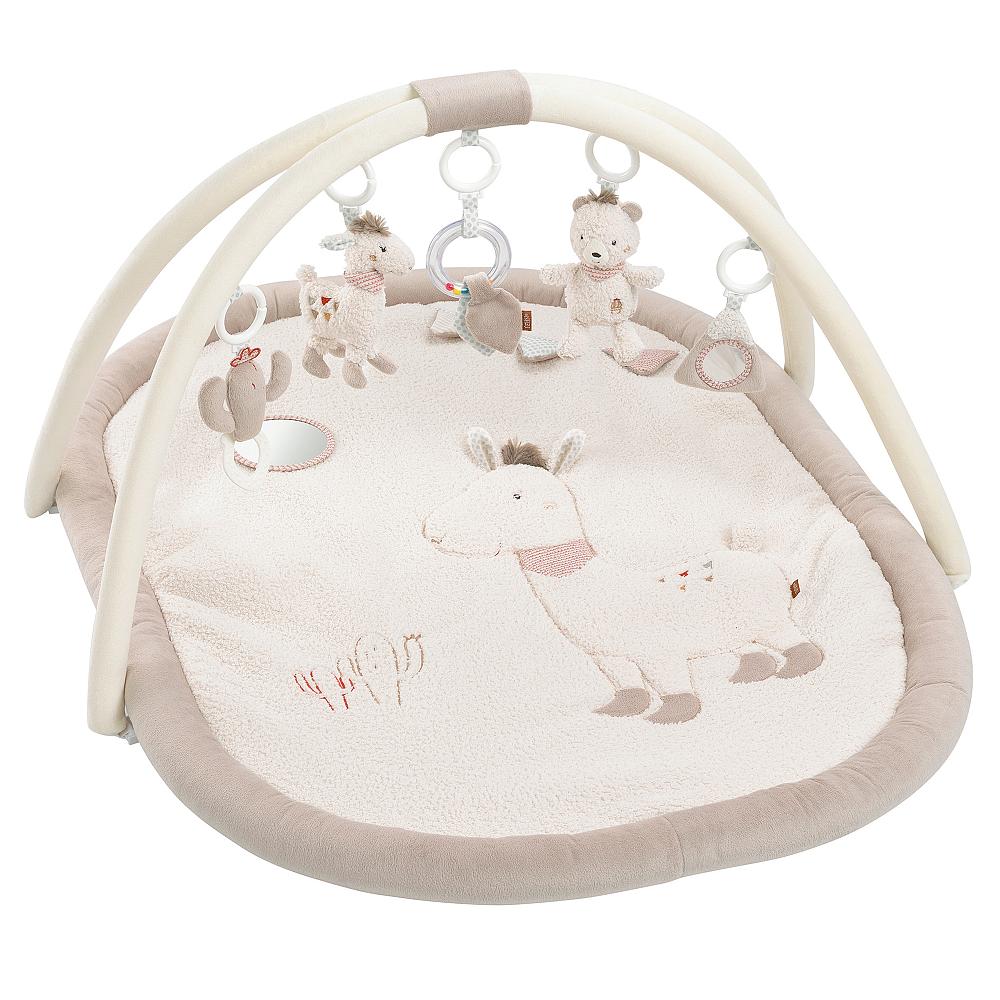 Die Erlebnisdecke Peru mit einer Liegefläche aus verschiedenen Materialien und Oberflächen lädt das Baby zum Fühlen, Kuscheln und Spielen ein und fördert durch die 3-D verarbeiteten Figuren Lama, Bär, Kaktus und Berg zusätzlich den Tastsinn & die Hand-Auge-Koordination. Eine versteckte Quietsche im Kaktus, das Zwitschern im Lama, das Raschelpapier in den Blättern und ein Glöckchen im Bären unterstützen den Spielspaß und die Aufmerksamkeitssteigerung des Babys. Darüber hinaus fördern weitere Spielmöglichkeiten auf der Kuscheldecke den Tast- und Hörsinn sowie die Motorik des Kindes. Mit der 3-D-Activity-Decke kann der Nachwuchs in verschiedenen Wachstumsphasen beim Spielen, Liegen, Krabbeln und Sitzen die Rücken- und Nackenmuskulatur spielerisch stärken.