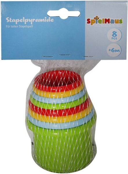 SpielMaus Baby Stapelbecher, 8 Becher in verschiedenen Farben und Größen. Maße ca. 8x8x10 cm. Für Kinder ab 6 Monaten.