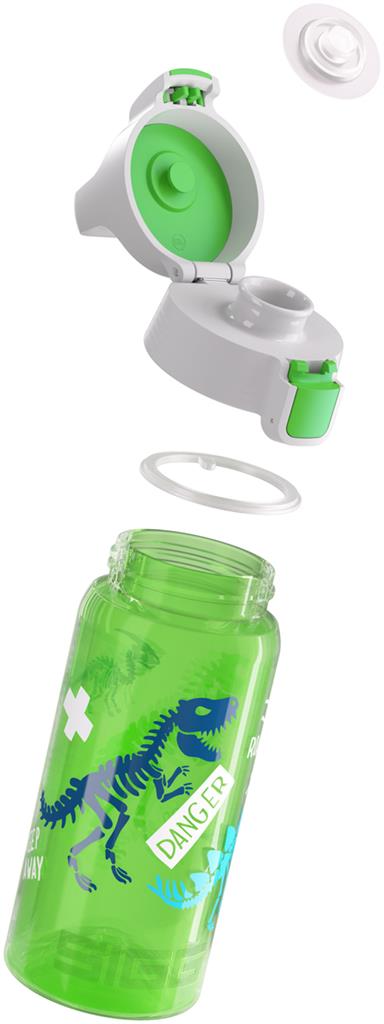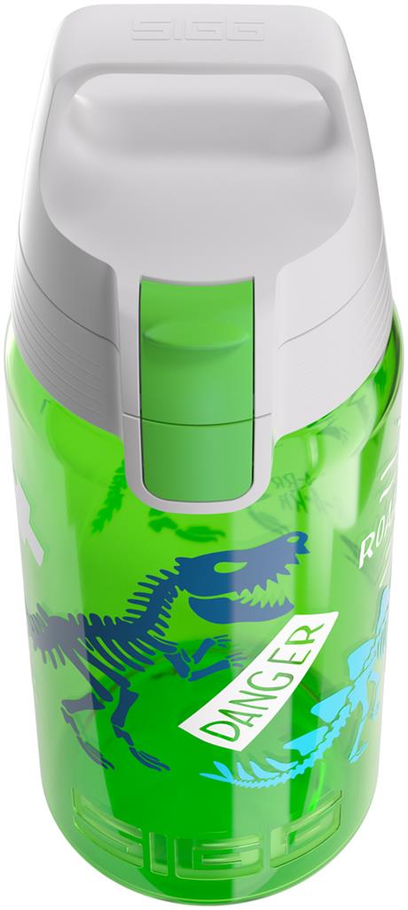 Dinosaurier können einem Angst machen, aber die Dinosaurier auf unseren SIGG-Flaschen werden definitiv zu deinen Freunden werden. Wir sind uns sogar sicher, dass das neue VIVA ONE-Design dein absoluter Favorit sein wird! Diese hochwertige, wiederverwendbare VIVA-Flasche besteht aus transparentem Polypropylen, sodass du immer sehen kannst, wie viel du schon getrunken hast oder ob du noch nicht so viel getrunken hast. Hergestellt aus recycelbaren Materialien und frei von Giftstoffen wie endokrinen Disruptoren und Phthalaten - so kann man sorglos seinen Durst löschen. Der innovative ONE-Verschluss macht die Trinkflasche besonders benutzerfreundlich: Mit nur einer Hand kann man sie tragen, öffnen, trinken, wieder verschließen und erneut verriegeln.