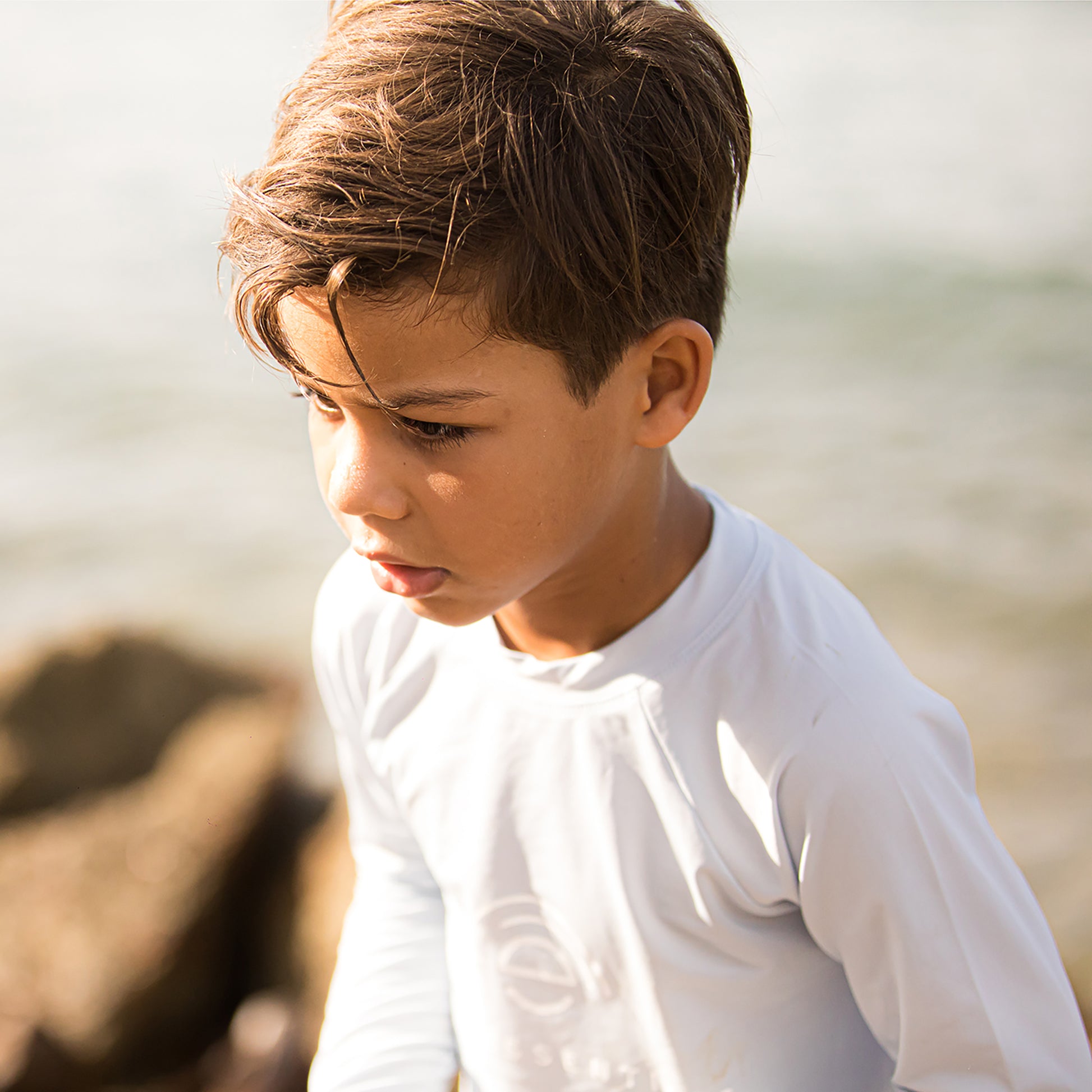 Dieses UV-Badeshirt für Jungen in der hellblauer Farbe ist perfekt zu kombinieren mit dem Weiße, blau gestreiften Badeshort. Das UV-Badeshirt hat lange Ärmel. Das UV-Badeshirt für Jungen ist in 8 verschiedenen Größen erhältlich und ist komplett UPF50+, was optimalen Schutz vor den UV-Strahlen der Sonne bietet.