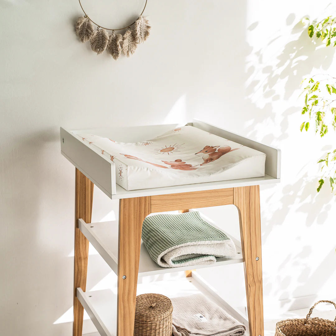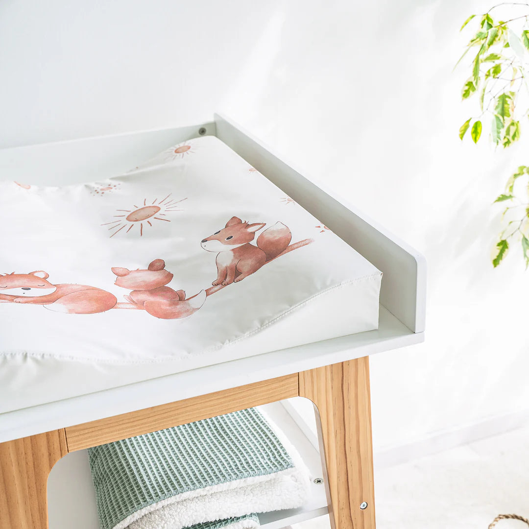 Die Wickelmulde Wave sorgt für eine weiche Polsterung und einen sicheren Halt beim Windeln wechseln. Durch die wellenförmigen Seitenränder liegt das Baby auch auf schmalen Wickeltischen sicher. Die phthalatfreie Folie im liebevoll gestalteten Design ist praktisch und pflegeleicht zugleich.