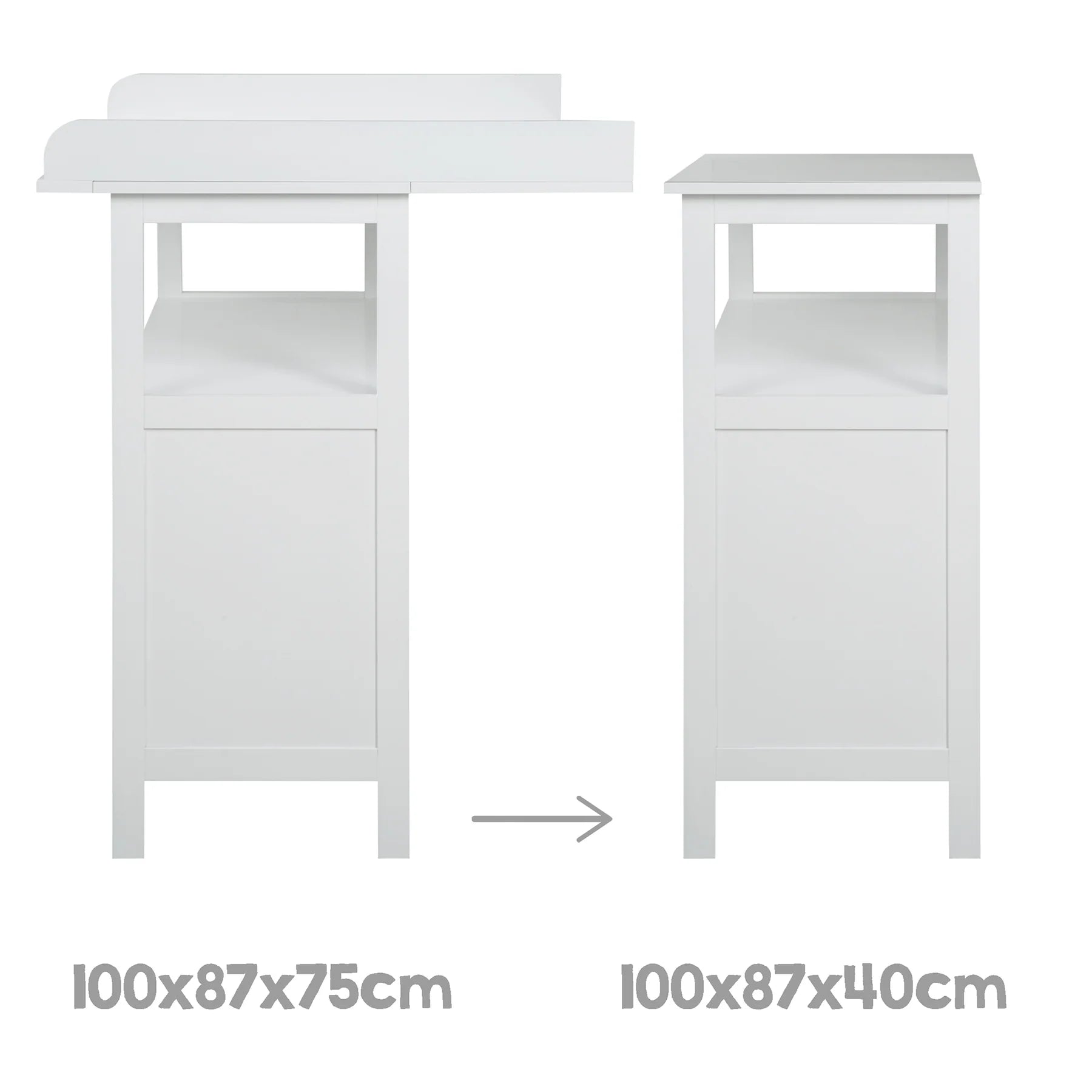 Die roba Wickelkommode mit abnehmbarem Wickelansatz hat eine angenehme, rückenschonende Wickelhöhe von 92 cm. H: 100 cm, B: 87 cm, Tiefe mit/ohne Wickelansatz: 75/40 cm.