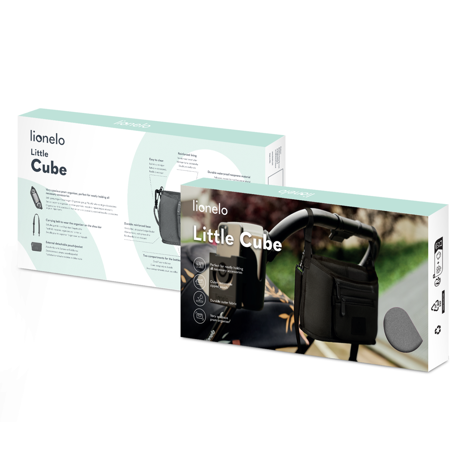 - LIONELO LITTLE CUBE: Kinderwagen-Organizer für alltägliche Spaziergänge. Aus wasserdichtem und sehr strapazierfähigem Material. Ausgestattet mit zwei Taschen für Flaschen und einer Haupttasche