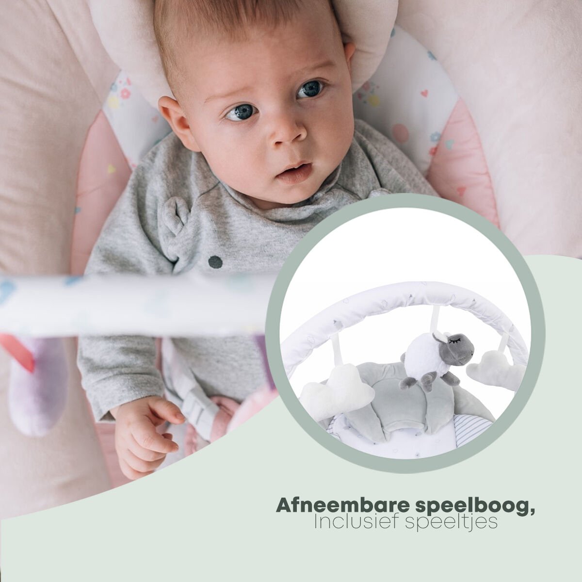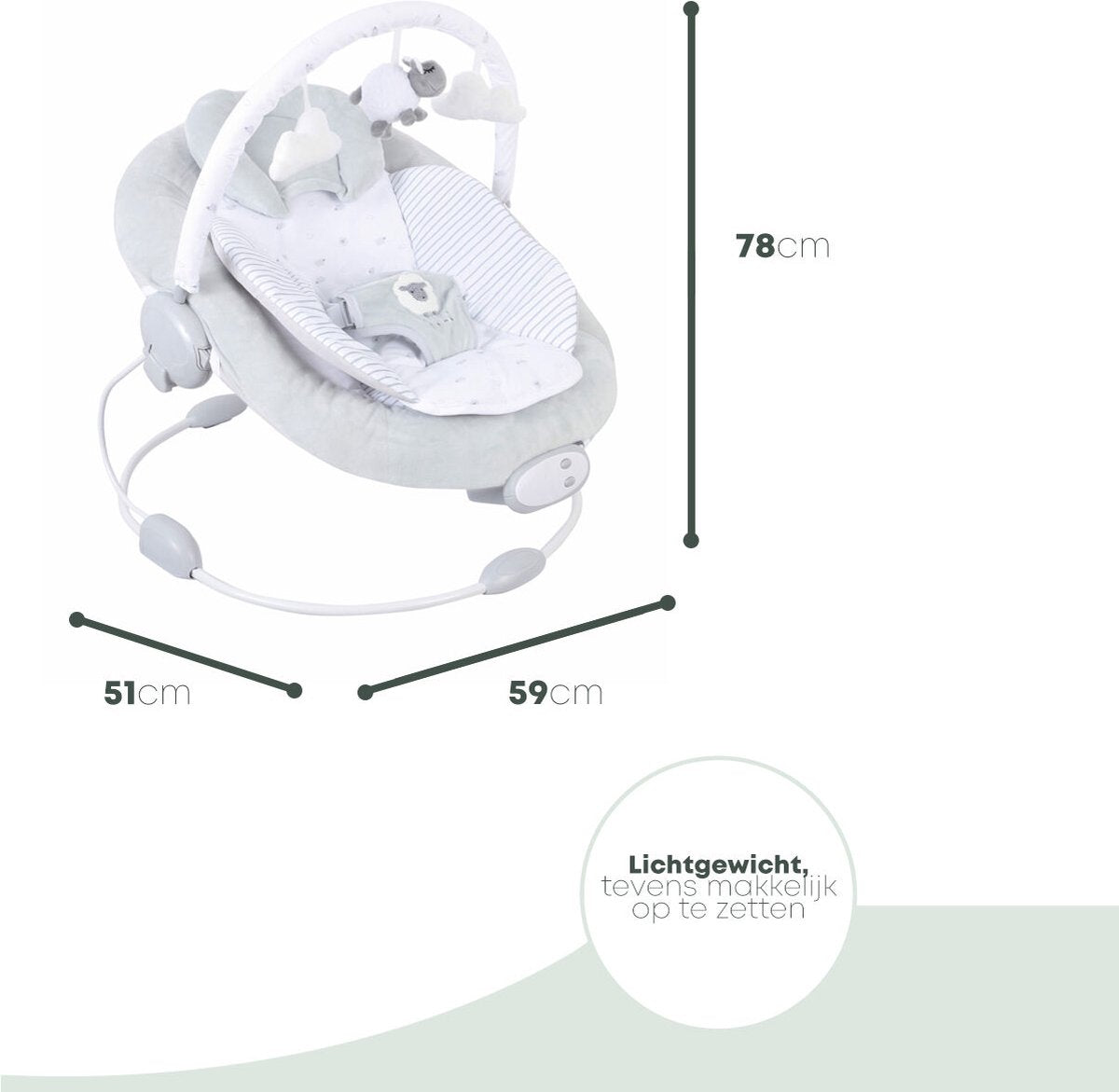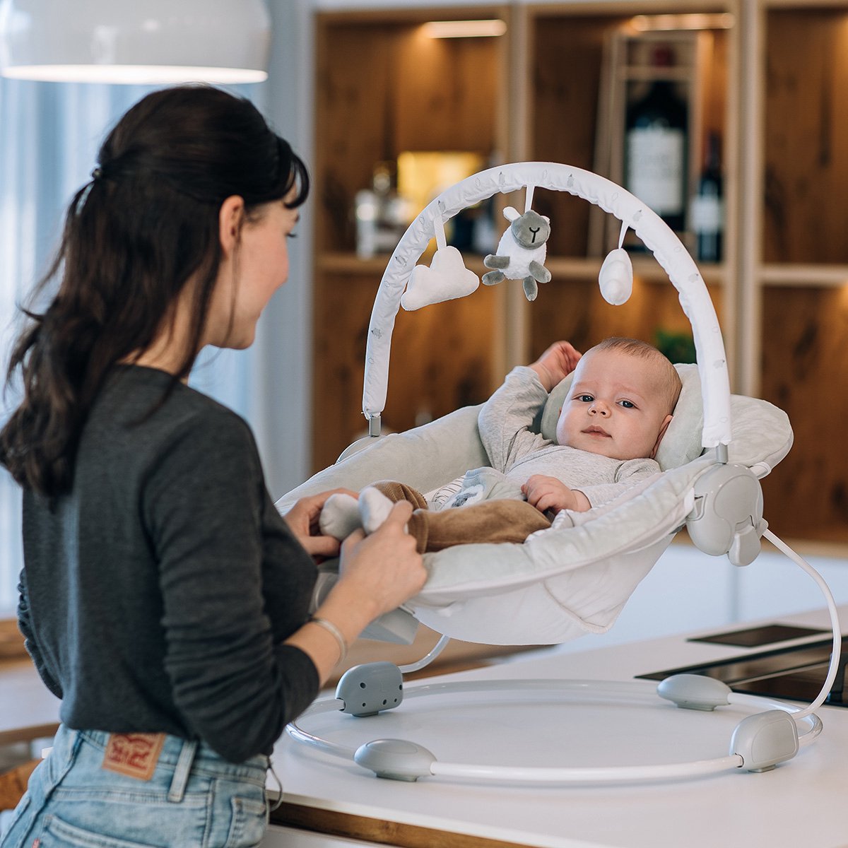 Bouncer Rest’N'Play ist ein großartiger Begleiter für die täglichen Aktivitäten Ihres Babys. Spielzeug auf dem Spielbogen zieht die Aufmerksamkeit eines Babys auf sich und fördert das Spiel. Sanfte Vibrationseffekte und Melodien (8) ziehen noch mehr die Aufmerksamkeit des Babys auf sich. Verstellbarer Rückenneigung bietet Ihrem Baby Komfort. Der Bouncer hat einen 3-Punkt-Sicherheitsgurt für den sicheren Einsatz.