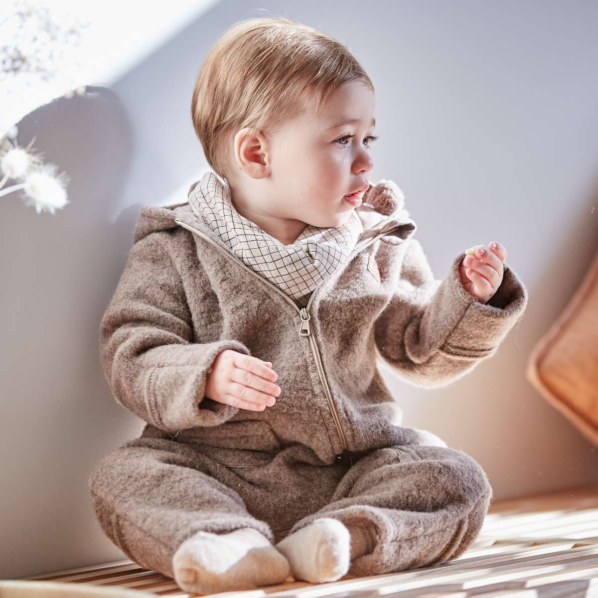 Der maximo BABY-Overall aus Wollfleece kbT und Jerseyfutter kbA ist der ideale Begleiter für die kalten Monate. Hergestellt aus 100% Merinowolle, bietet er optimalen Wärmekomfort. Der schräg verlaufende Reißverschluss mit Kinnschutz ermöglicht einfaches An- und Ausziehen, während die süße Zipfelkapuze und die aufgesetzte Tasche zusätzlichen Charme verleihen. In melierten Farbtönen und unisex, erhältlich in den Größen 62/68 bis 86/92. GOTS-zertifiziert und Made in Germany.
